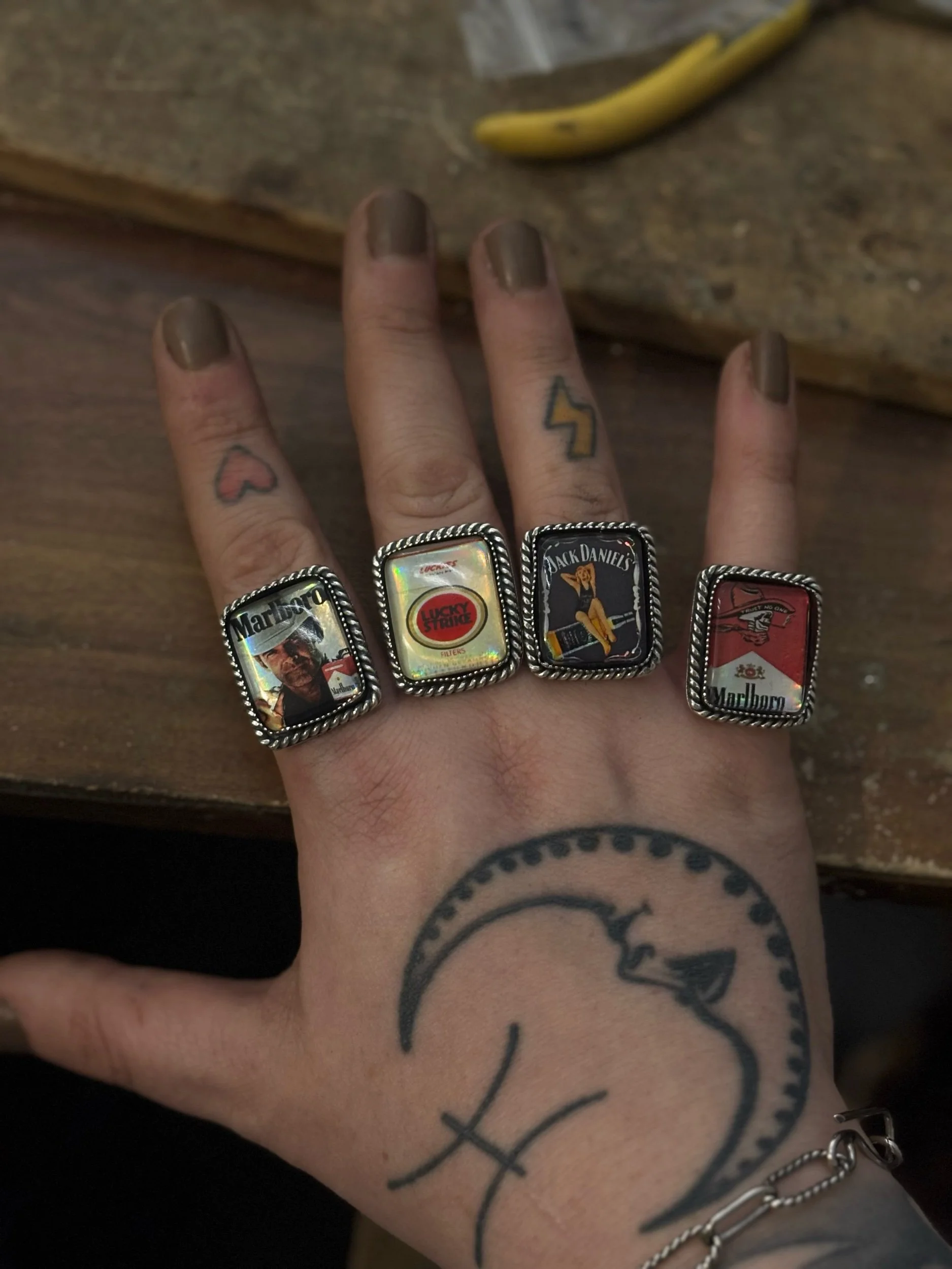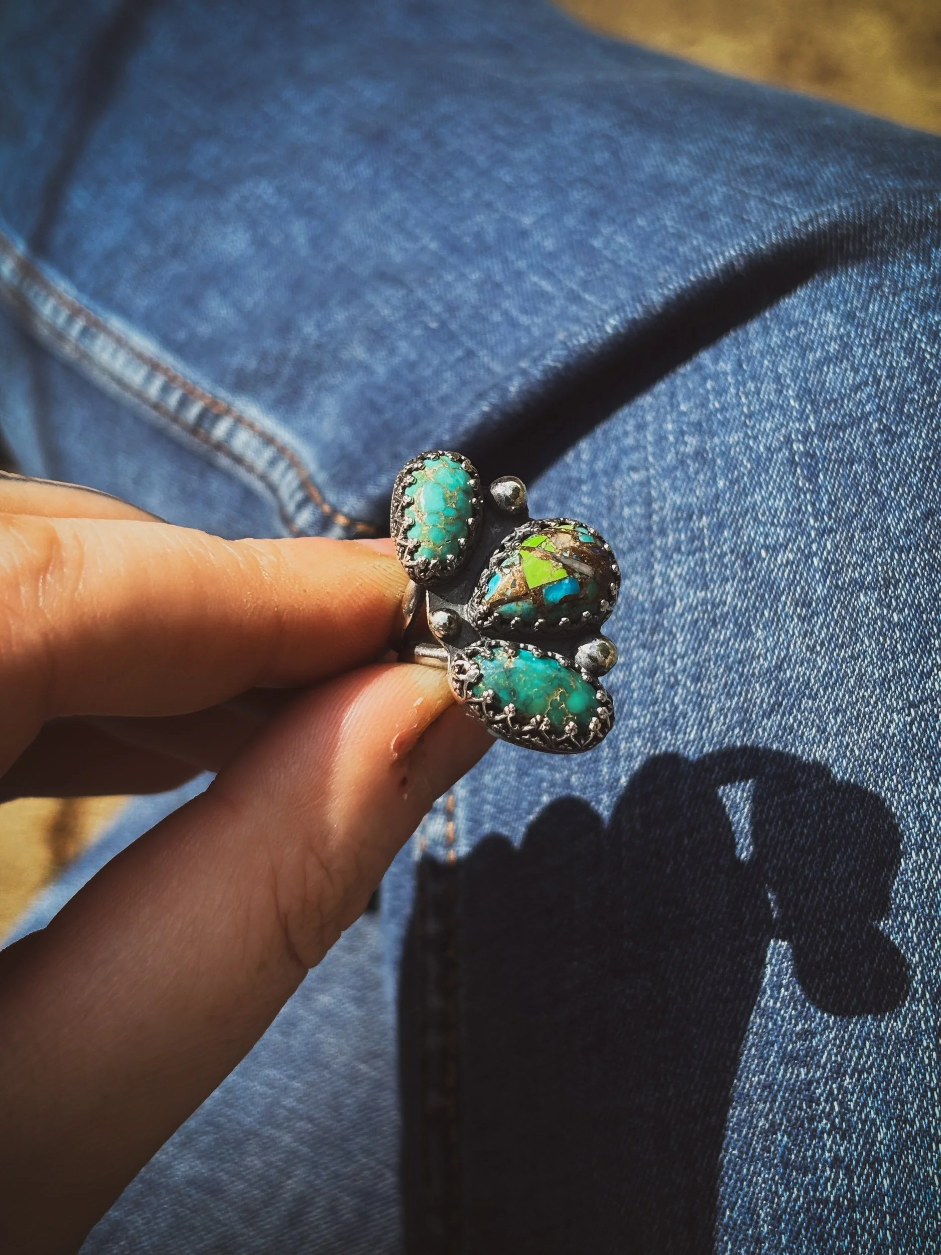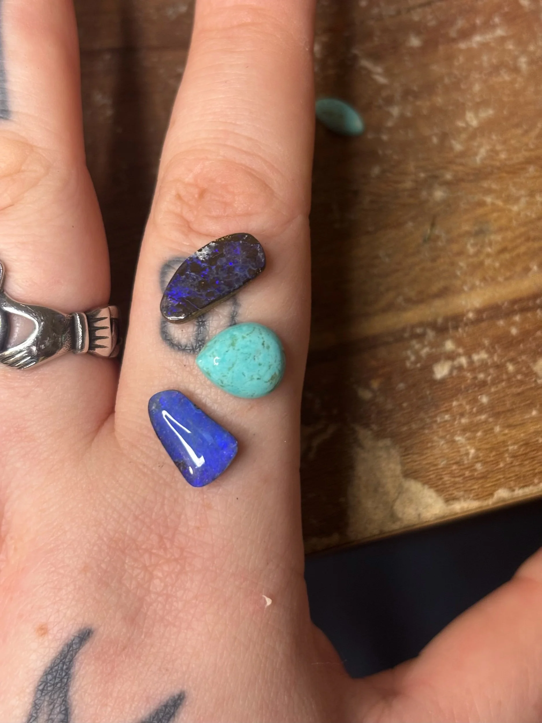 All one off pieces are unset and waiting to be finished your way as a custom ring in your size or pendant. Cuffs & bolo ties available on some items.