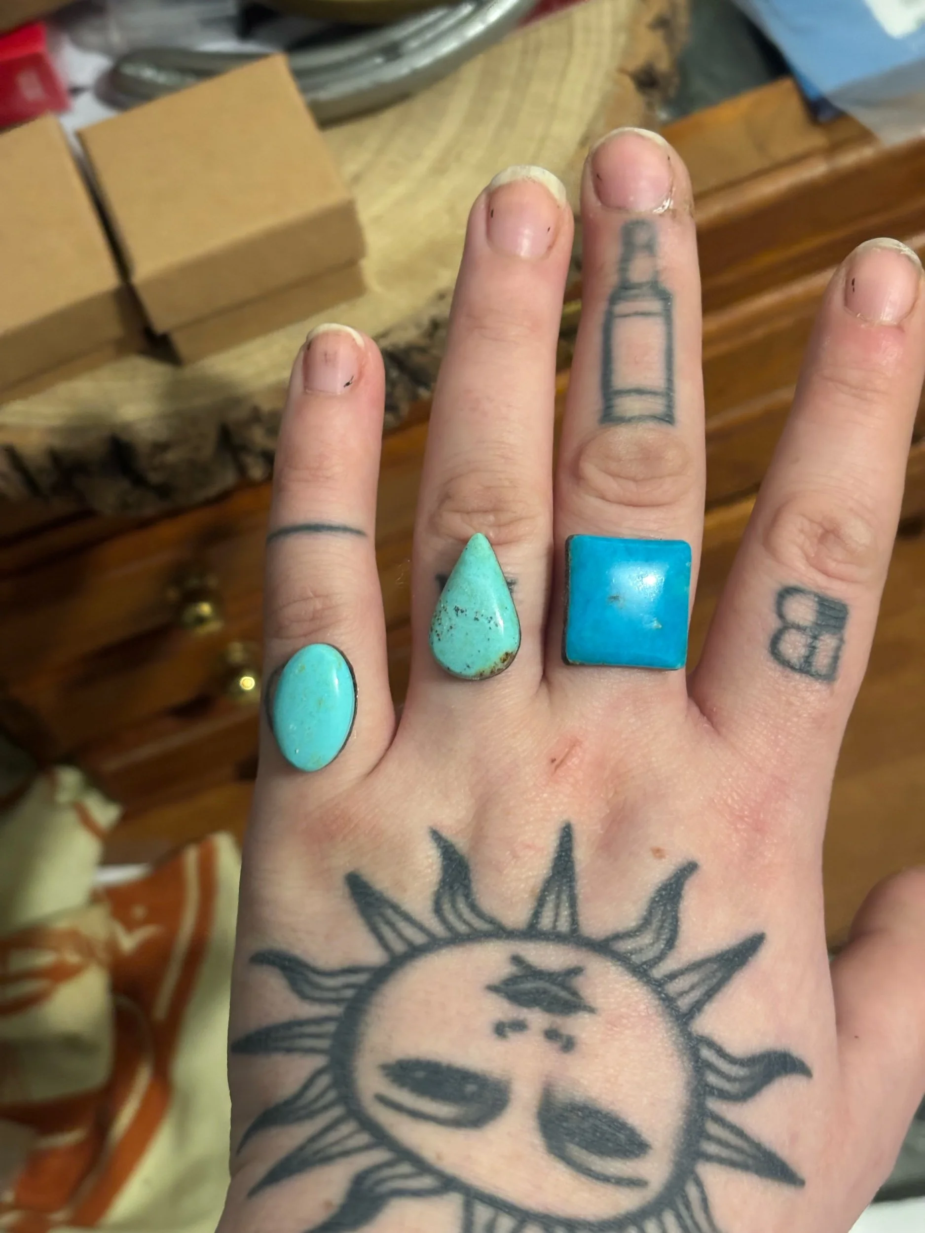 One-off pieces › Rebecca custom Kingman Square ring Image 1 of 2 Image 2 of 2 Rebecca custom Kingman Square ring £120.00 Sold Out Square shaped Kingman Turquoise stone set with a rope border on a split shank.Please add ring size at checkout. Thank you! Sold Out Added! Square shaped Kingman Turquoise stone set with a rope border on a split shank.Please add ring size at checkout. Thank you!